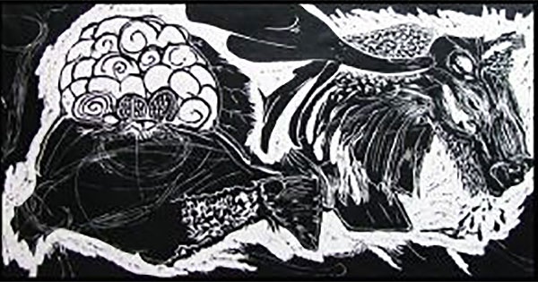 Printmaker Frank Travers, who also lives and works in Dayton, will exhibit a series of works titled What Remains. Of his work, Travers says, “I’m very interested in the details and the things that get a little gross; puss, guts, worms that live in guts and other parasitic activity. I think we all know fragility of the body and become more aware of it the older we get. I want to show through my pictures a stagnant decay that is also a sort of narrative perspective that is metaphysical but also recognizable.”