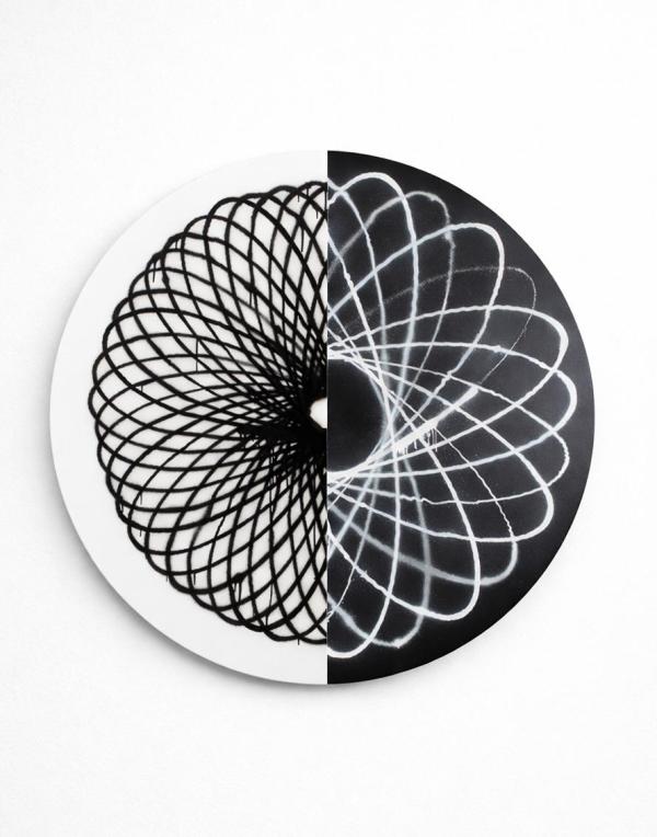 Image: Jason REVOK, Spiro-sm-split-50/50-B&W-1A-1/26, 2026, acrylic and synthetic polymer on canvas, 60 x 60 inches. Courtesy of the artist.
