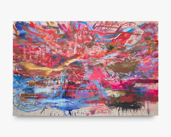Image: Paul Verdell, Vein In Vain, 2025, acrylic, oil, and collage on canvas, 78 x 120 inches.