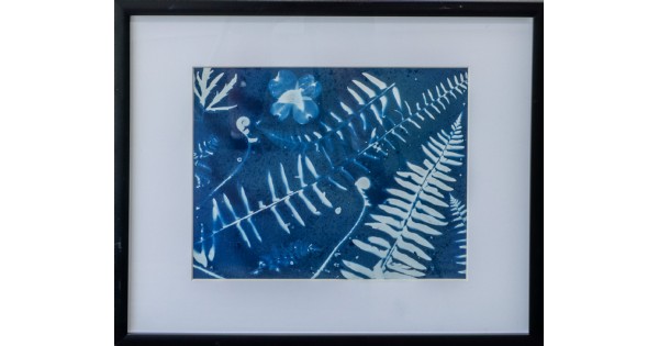 Brenda is an artist working in the alternative photographic process of Cyanotype Printing. This is a very popular alternative process for artists who begin image printing without ever picking up a camera!  This is an early photographic process, used since 1842, and was adopted very early for making blueprints. It is a process that naturally produces blue (Cyan) images and often uses objects placed directly on the chemically coated paper or fabric, which is then exposed to UV or direct sunlight to produce a shadowgram.