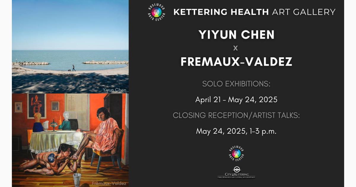 Date: April 21 - May 24, 2025 Time: Hours of Operation at Rosewood Arts Center Location: Rosewood Arts Center, Kettering Health Art Gallery Closing Reception and Artist Talks: May 24, 2025, 1 - 3 p.m.