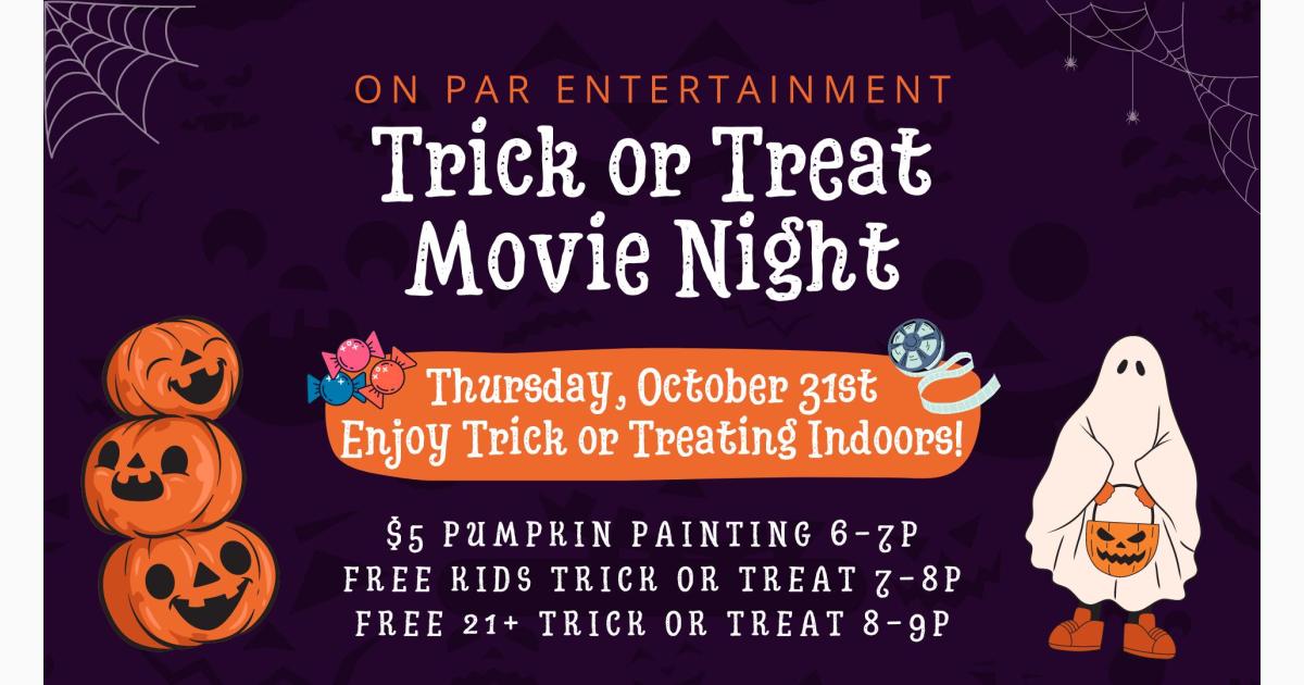 Join us for a spooky night of indoor trick or treating and movies at On Par Entertainment!