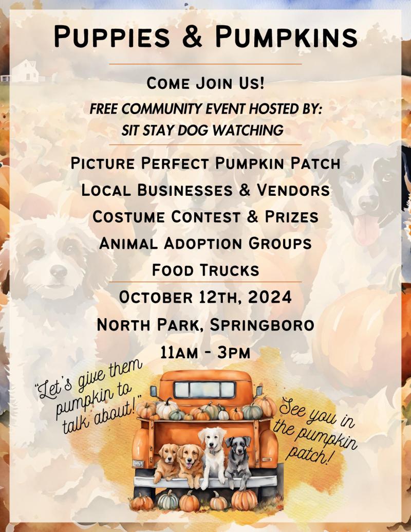 Puppies & Pumpkins is taking place at North Park, which is located at 195 Tamarack Trail in Springboro. North Park - North Park has 2 lighted tennis courts, 3 soccer fields,1 shelter, 1 playground area, a concession stand, .89 mile walking trail and offers a summer concert series and theatre under the stars at the North Park Amphitheater.