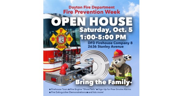 The Dayton Fire Department will host a community open house on Saturday, Oct. 5, from 1 p.m. to 5 p.m., at Fire Station 8 (2636 Stanley Ave, Dayton, OH 45404). The open house is a kick-off for Fire Prevention Week and an opportunity to meet Dayton firefighters and police officers. Families and all ages are encouraged to attend.