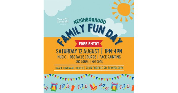Neighborhood Family Fun Day is taking place at Grace Covenant Church, which is located at 780 N Fairfield Rd in Beavercreek. Grace Covenant Church - Grace Covenant Church is a non-denominational church with reformed baptist convictions.