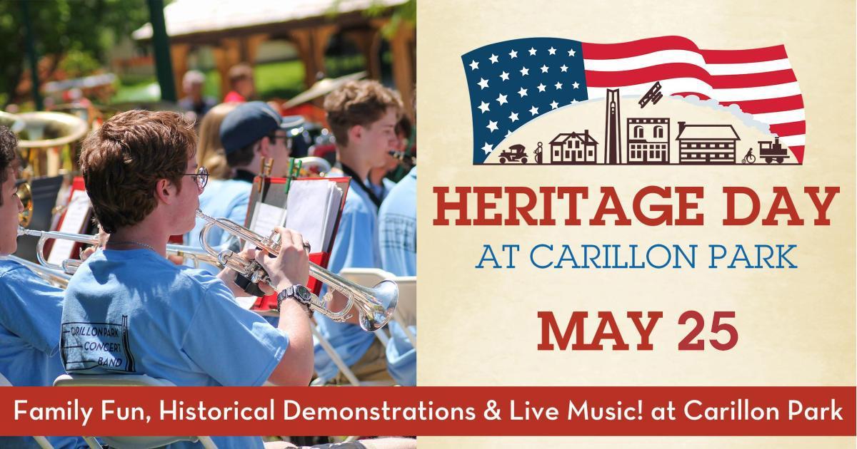 Dayton Heritage Day at Carillon Park is taking place at Carillon Park, which is located at 1000 Carillon Blvd in Dayton. Carillon Park - Experience Dayton's rich heritage of creativity and invention at Carillon Historical Park! Enjoy our beautiful 65-acre campus with 35 special exhibit buildings and structures ready for you to explore.