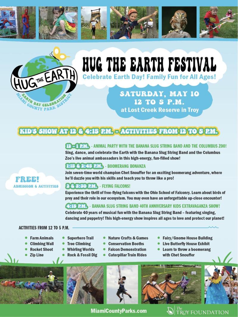 Get ready for a day packed with outdoor fun, nature discovery and high-energy entertainment at the 29th Annual Hug the Earth Festival, happening Saturday, May 10 from 12 to 5 p.m. at Lost Creek Reserve in Troy.