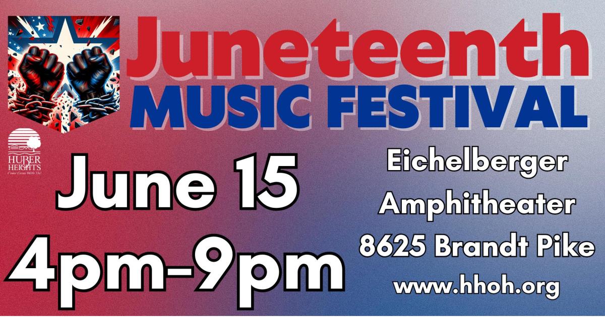 The City of Huber Heights’ Culture and Diversity Citizen Action Commission is excited to host the 4th Annual Juneteenth Music Festival at the Eichelberger Amphitheater on Sunday, June 15, from 4-9 p.m.