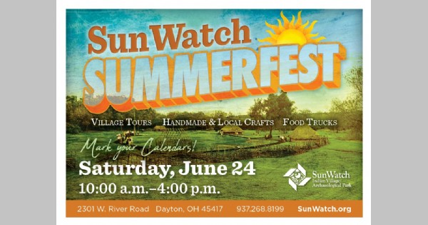 SunWatch Summer Fest is taking place at Sunwatch Indian Village, which is located at 2301 West River Road in Dayton. Sunwatch Indian Village - SunWatch is a 13th century American Indian village located along the Great Miami River in Dayton, OH. Archaeological excavations from 1971-1988 revealed a planned, stockaded Fort Ancient period settlement with astronomical alignments.