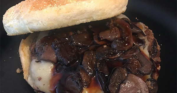 Our signature beef blend topped with our unique mushroom & merlot reduction & Swiss cheese