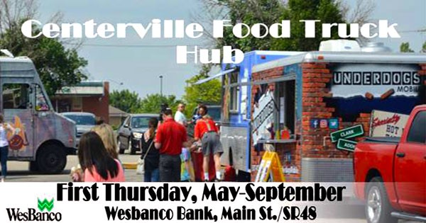 Multiple Food Trucks will meet in the Wesbanco Bank parking lot in Centerville on the First Thursday of every month rain or shine.