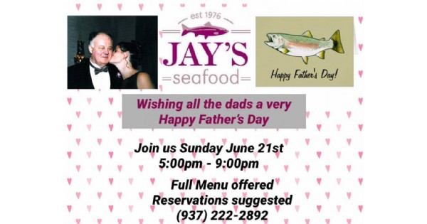 Father's Day at Jay's Seafood is taking place at Jay's Seafood Restaurant, which is located at 225 E 6th St in Dayton. Jay's Seafood Restaurant - Ohio's premier independent Seafood Restaurant has been a local favorite in the Historical Oregon District in Downtown Dayton for over 40 years.