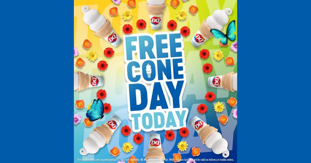 Welcome spring with a taste of summer! Dairy Queen will be giving away a free small soft-serve vanilla cone to every customer on Thursday, March 20. There is a limit of one free cone per person at participating locations. The offer is not good at shopping mall food court locations.