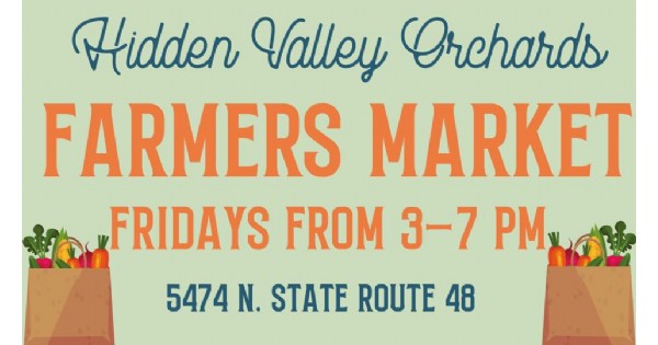 Hidden Valley Orchards Farmer's Market is taking place at Hidden Valley Orchards, which is located at 5474 N. State Rt. 48 in Lebanon. Hidden Valley Orchards - Mini Market • The COOP at HVO (soft serve ice cream shoppe) • The Crate Room Tap Room • Bakery Items • Seasonal Farm Fun • Take Out Food • More