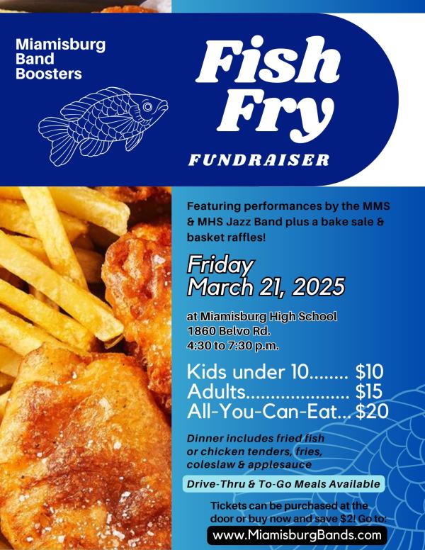 Miamisburg Band Boosters Fish Fry is taking place at Miamisburg High School, which is located at 1860 Belvo Rd in Miamisburg. Miamisburg High School - Miamisburg High School is a public high school located in Miamisburg, Ohio.