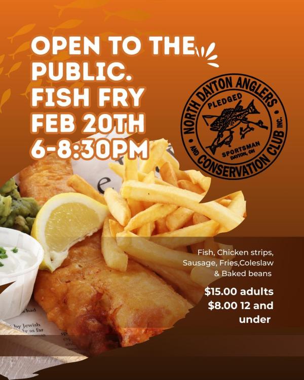 Open to the public 🐟 North Dayton Anglers & Conservation Club Fish Fry