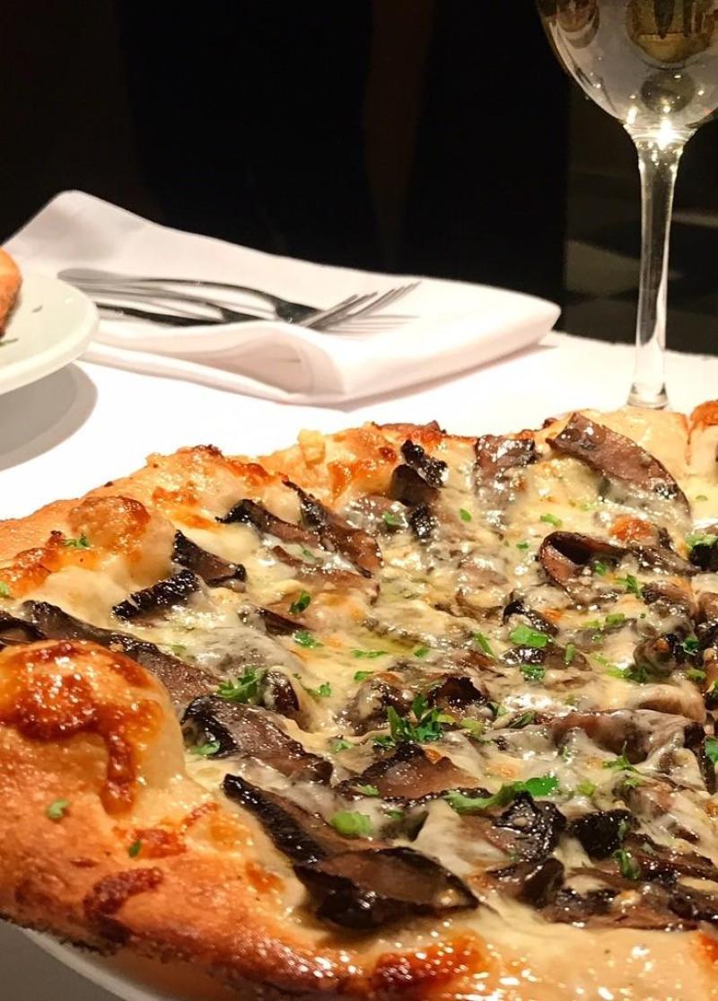 Wild Mushroom Pizza – Sauteed shitake and crimini mushrooms, blue cheese, fontina, scallions and pinenuts, or