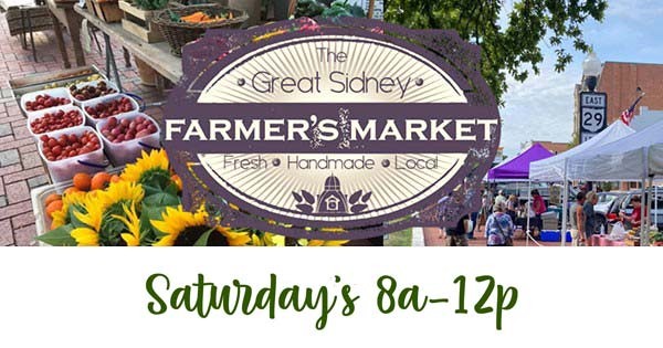Join us every Saturday, 8:00 a.m. to Noon! The market is located around the courtsquare, right in the heart of downtown Sidney. Crafters offer a large variety of homemade items, and farmers bring their freshest produce to tantalize your taste buds. Fresh baked goods and jams and jellies are always a crowd pleaser. Plants and flowers are abundant. Shop early for your best selection!