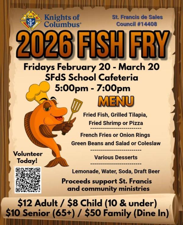 Join us for weekly fun and food! St. Francis de Sales Lebanon Fish Fry on Fridays February 20 to March 20, 2026