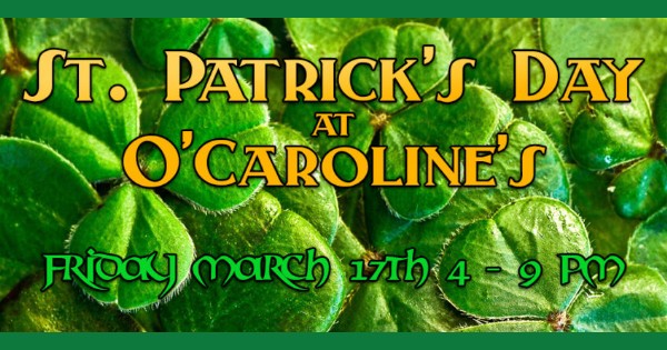 Join us to celebrate St. Paddy’s Day this year on Friday, March 17th at O’Carolines from 4-9 pm!