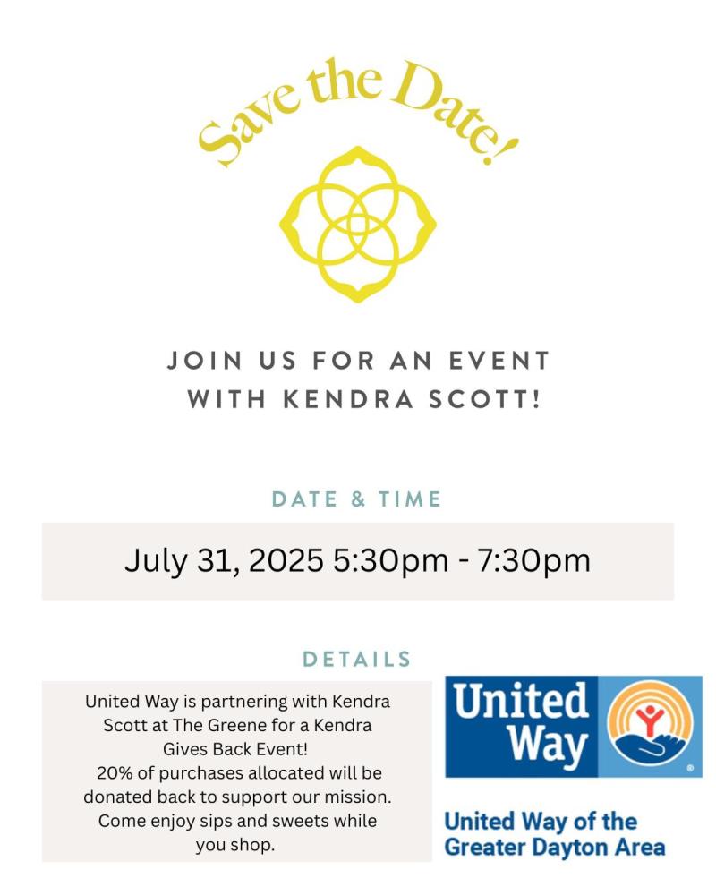 Kendra Gives Back - United Way of the Greater Dayton Area is taking place at Kendra Scott, which is located at 4420 Glengarry Dr in Beavercreek. Kendra Scott - Lifestyle & jewelry company - located at The Greene in Beavercreek