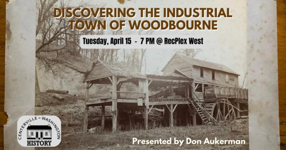 Centerville-Washington History presents: “Discovering the Industrial Town of Woodbourne,” presented by Don Aukerman, on Tuesday, April 15 at 7 pm at the RecPlex West auditorium.