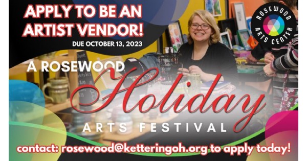 Artists are welcome to apply to be an artist vendor at this year’s Holiday Arts Festival! Artist Vendor’s will have the opportunity to sell their artwork at a Rosewood Holiday Arts Festival. The event will take place on Saturday, December 2, 2023 at Rosewood Arts Centre from 11 AM - 3 PM. For more information, and to receive an application, please email rosewood@ketteringoh.org. Applications are due on October, 13, 2023.