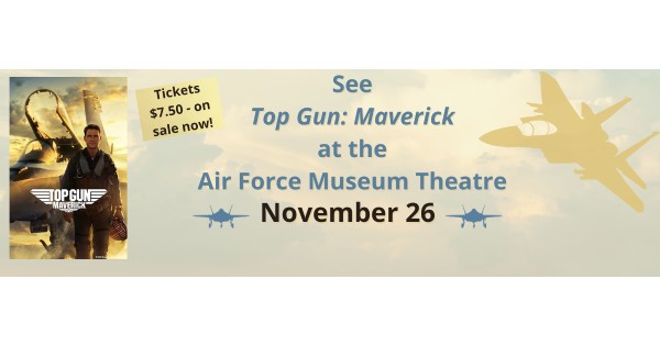 Top Gun: Maverick is flying into the Air Force Museum Theatre! Join us on Sunday, November 26 to enjoy this fan-favorite on the big screen. Tickets $7.50 each.