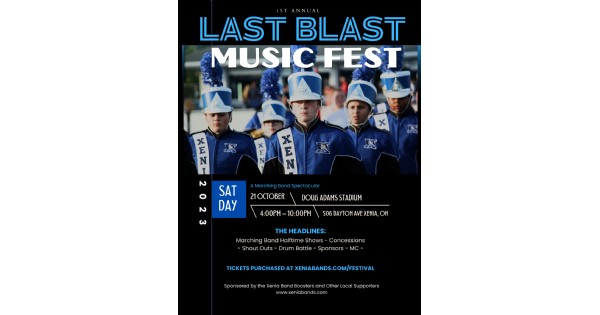 Introducing the LAST BLAST MUSIC FEST! Xenia's very first Marching Band festival! Held at our newly renovated Doug Adams Stadium and sponsored by the Doug Adams Trust.