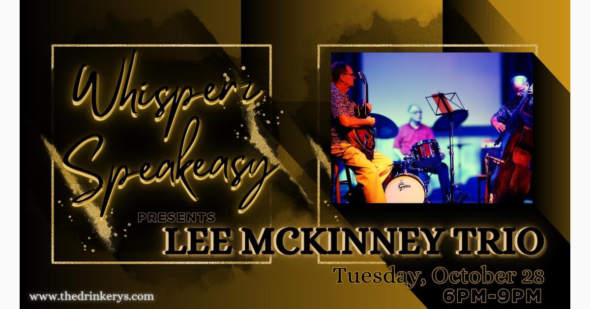 Join us Tuesday night, October 28th, as we welcome the Lee McKinney Trio back to the Whisperz Speakeasy stage from 6-9pm alongside our Tuesday night Wine Specials!