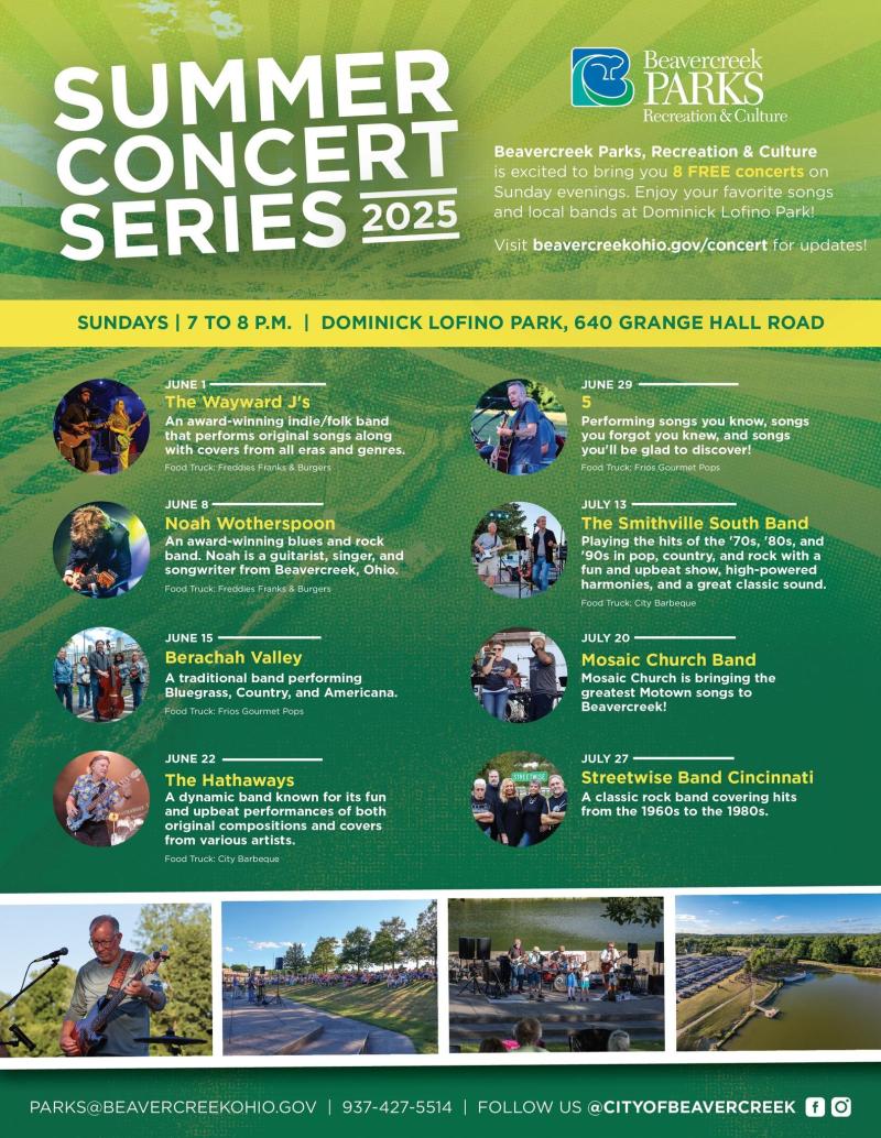 Free Sunday Evening Summer Concerts at the Dominick Lofino Park amphitheater on Grange Hall Road, Beavercreek. Enjoy a diverse range of musical styles and genres courtesy of Beavercreek Parks & Recreation!