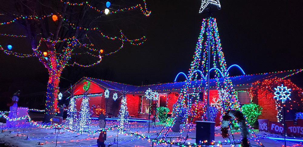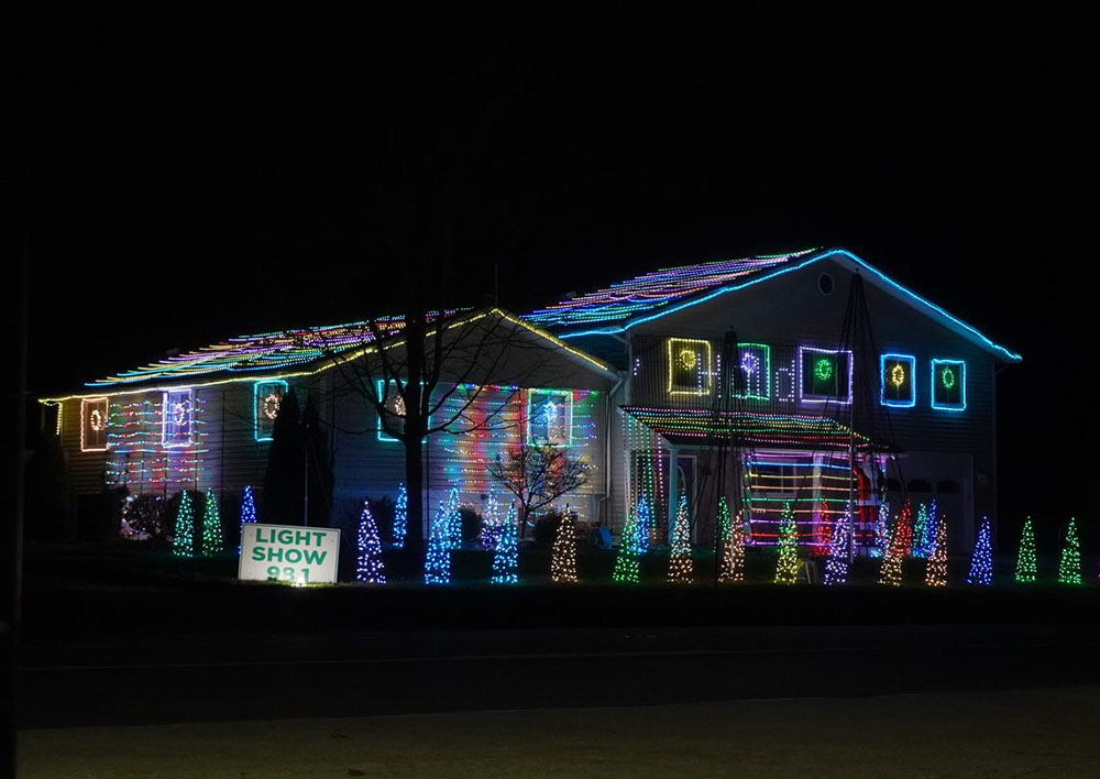 Enjoy the Karney family's 20,000+ light display synchronized to music. Tune to 98.1 FM. Turn off your head lights, Park and Stay a while! Lights are on 6pm-10pm Every-night through New Years Eve