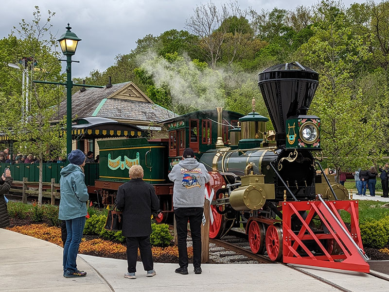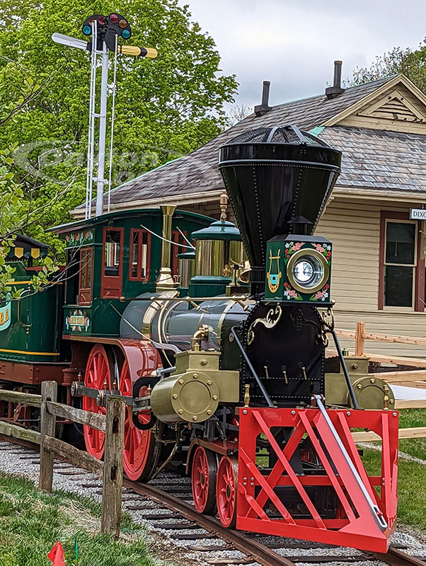 The train is a full-size replica of the "Cincinnati," the first locomotive to pull a passenger train into Dayton in 1851 on the Cincinnati, Hamilton & Dayton Railroad.