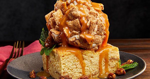 Bread pudding / caramel sauce / cinnamon crisps / spiced pecans / vanilla bean ice cream