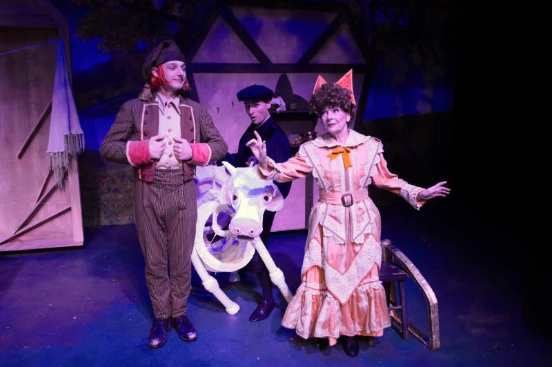 Some familiar faces, who shine like normal; Linda Dew (Jack’s mother), always performs admirably with a strong stage presence. Special mention to her shuffle as Granny. Allison Gabert’s youthful energy is perfection for Little Red Riding Hood and Jonathan “Gulp” Pendergrass controls the movements of Milky White the cow as Puppeteer. While exiting the theatre, the family behind us was raving about all the facial expressions Pendergrass provided to match the cow. It’s a testament to Pendergrass, and deservedly so, that with all that happened on stage that its Milky White who stood out to them. I was about to start a search party, or at least look up ‘Still Kicking with Karie-Lee’ to check-on Karie-Lee Sutherland as I feared she may be a victim of DOGE since she hasn’t appeared since Shear Madnes.