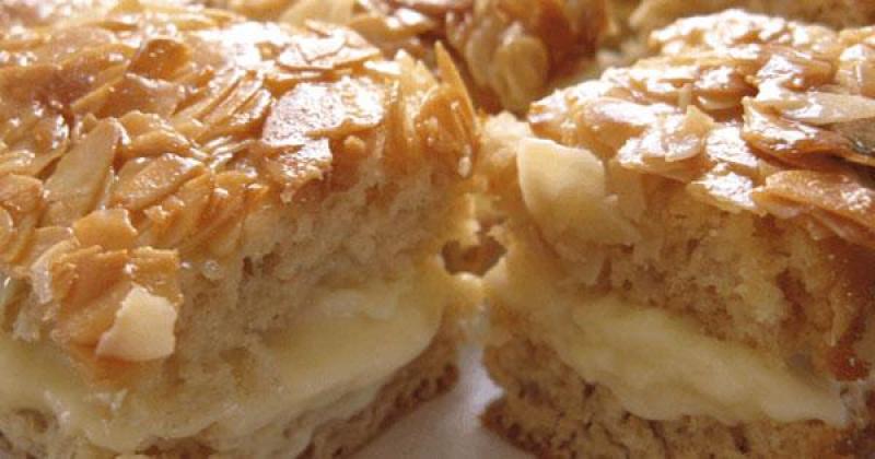 Photo above: Try the Bienenstich (bee sting) cake - made from layers of German pastry dough filled with custard and topped with honey-glazed sliced almonds - you won't be disappointed!