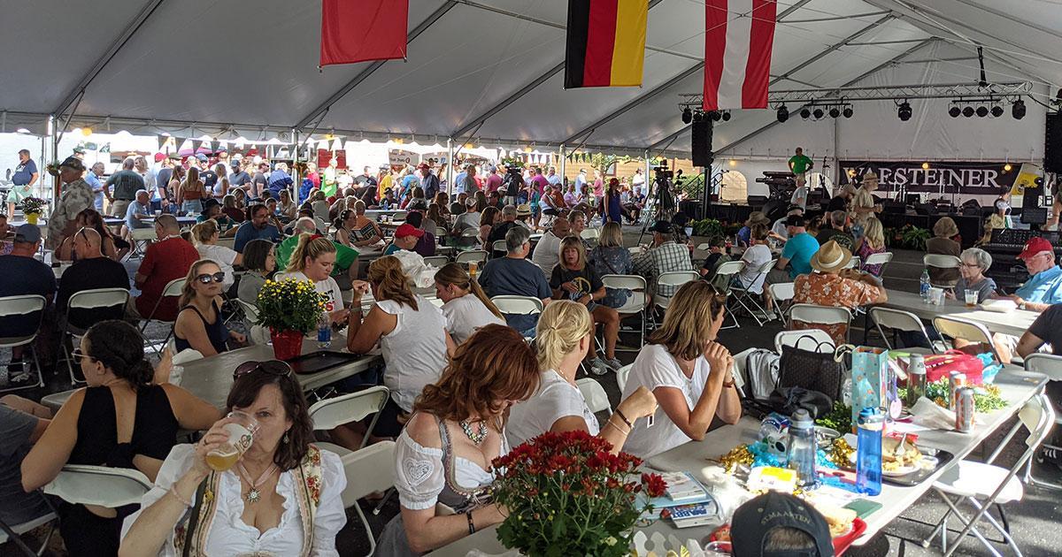 Photo above: Plenty of seating to enjoy delicious homemade German food including German schnitzel, sausages, cabbage rolls, potato salad, sauerkraut and more.