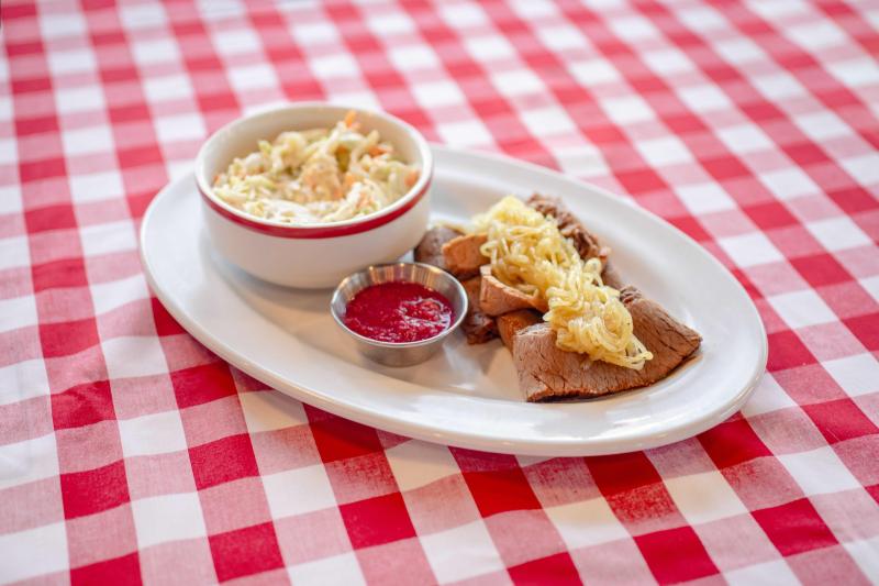 - Entrée & Side Dish: Selections include Brisket with caramelized onions and beet horseradish, Chicken Cutlet (Schnitzel) with lemon and house-cut fries, or Meatloaf with brown sugar glaze and potato salad.