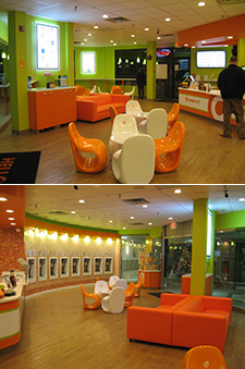Take one step into Orange Leaf and you'll know they aren't kidding about the name. It's all orange and white, like a creamsickle. The now-familiar line of self-serve model dominates the little shop, with a great set of combinations of flavors to try. I had to sample all of them - it's a habit of mine to get a little dollop of everything - and I can definitely see the wisdom in setting things up the way they are. I like strawberries and I like peanut butter, but it never occurs to me until it's too late that those two flavors don't necessarily go well together.