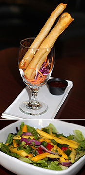 The Burmese Roasted Garlic & Chive Sticks with Thai Sweet Chili Sauce are rolls of phyllo filled with rich creamy garlic rangoon style filling, and a lot more of it than you would get in a traditional crab Rangoon.