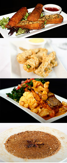When my friend and I visited, we started with the Asparagus Fries and Delish Soul Rolls. You really can't go wrong when something is fried, which was the case for the fries. Asparagus has never tasted so good. The Delish Soul Rolls were similar to Chinese Egg Rolls, not Pillsbury Rolls. Once I got my mind wrapped around what "roll" implied, I was set to enjoy them. There were greens, chicken, vegetables and corn meal inside them. The menu was right - it was indeed a Sunday dinner in one bite and I loved it.Next was the entree. I ordered the Salmon Diablo. The blackened salmon was covered in a creamy diablo sauce with shrimp and bay scallops over cheese grits. Oh my, those cheese grits were divine! The main menu featured options like wings and chicken, fish tacos, quesadillas and more. With different specials every week, there’s always something new to try.