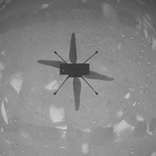 Ingenuity soars above Mars holding piece of Wright brothers' first airplane