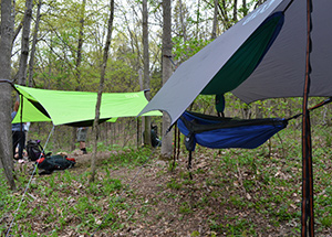 Before going, I called Five Rivers Metropark a month ago to reserve a campsite. It is free but campsites get booked up quick. The 2 front country campsites usually book up quick because they can accommodate more people and allow campfires. They were booked so we opted for the backcountry campsite, which we didn't mind since it's more secluded, was more miles to hike, and more trees which was good since most of us were hammock camping!