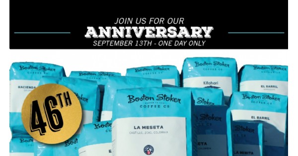 Boston Stoker Celebrates 46th Anniversary on September 13 with One-Day Only Coffee, Beans and Cigar Sale.