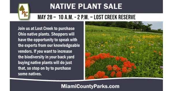 Native Plant Sale is taking place at Lost Creek Reserve, which is located at 2385 E. State Route 41 in Troy. Lost Creek Reserve - Great place for hiking, cross country skiing and viewing wildlife. 457 acres and 3.4 miles of trails, taking you past fields, wooded areas and the Lost Creek.