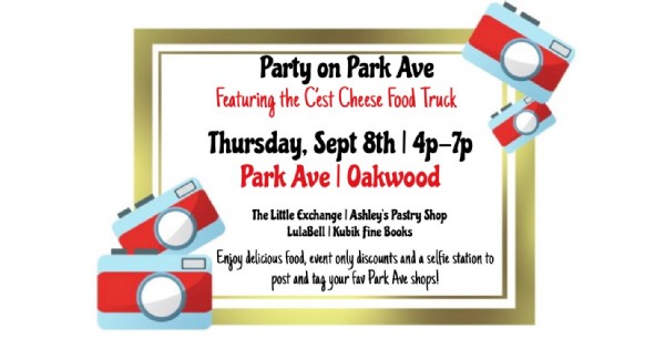 Join us September 8th from 4p-7p on Park Avenue in Oakwood, featuring the C'est Cheese food truck! The truck will be offering delicious gourmet grill cheese!Park Ave shops will have specials