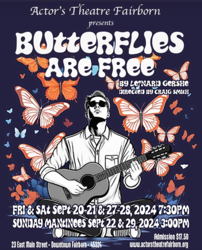 Butterflies Are Free is taking place at Actors Theatre Fairborn, which is located at 23 W Main Street in Fairborn. Actors Theatre Fairborn - Local community theatre located in Fairborn, OH.