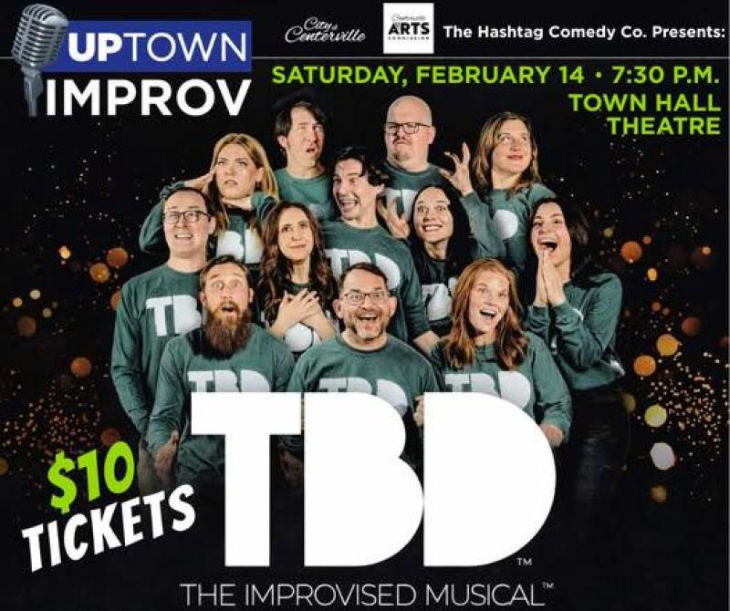The Centerville Arts Commission and City of Centerville are pleased to present a one-of-a-kind theatrical experience this Valentine’s weekend with Uptown Improv featuring TBD: The Improvised Musical! on Saturday, February 14 at 7:30 p.m. at Town Hall Theatre
