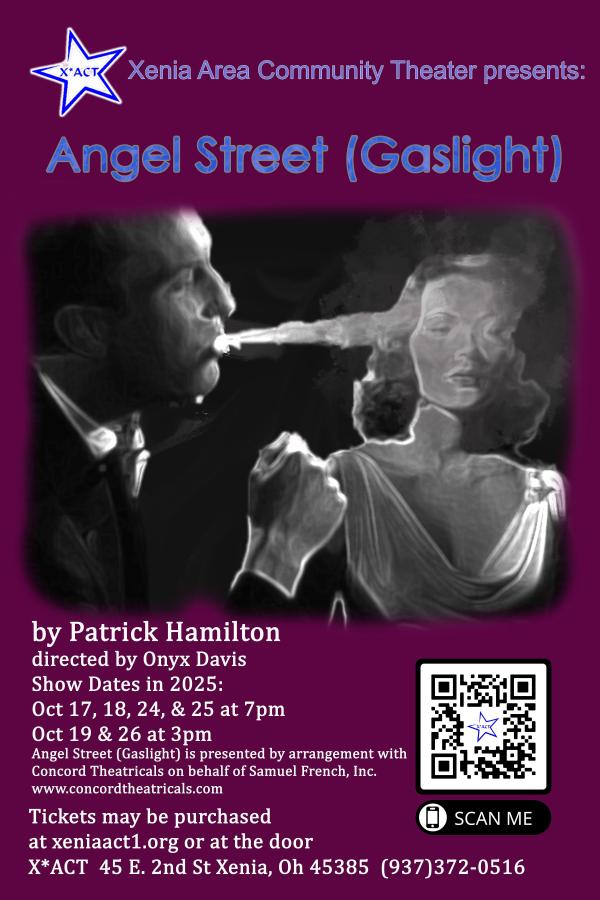 Angel Street (Gaslight) by Patrick Hamilton is taking place at Xenia Area Community Theater, which is located at 45 E. Second St. in Xenia. Xenia Area Community Theater - Xenia Area Community Theater X*ACT is a small community theater in the heart of Greene County, Ohio. We are a non-profit, completely volunteer run theater in the heart of Xenia.