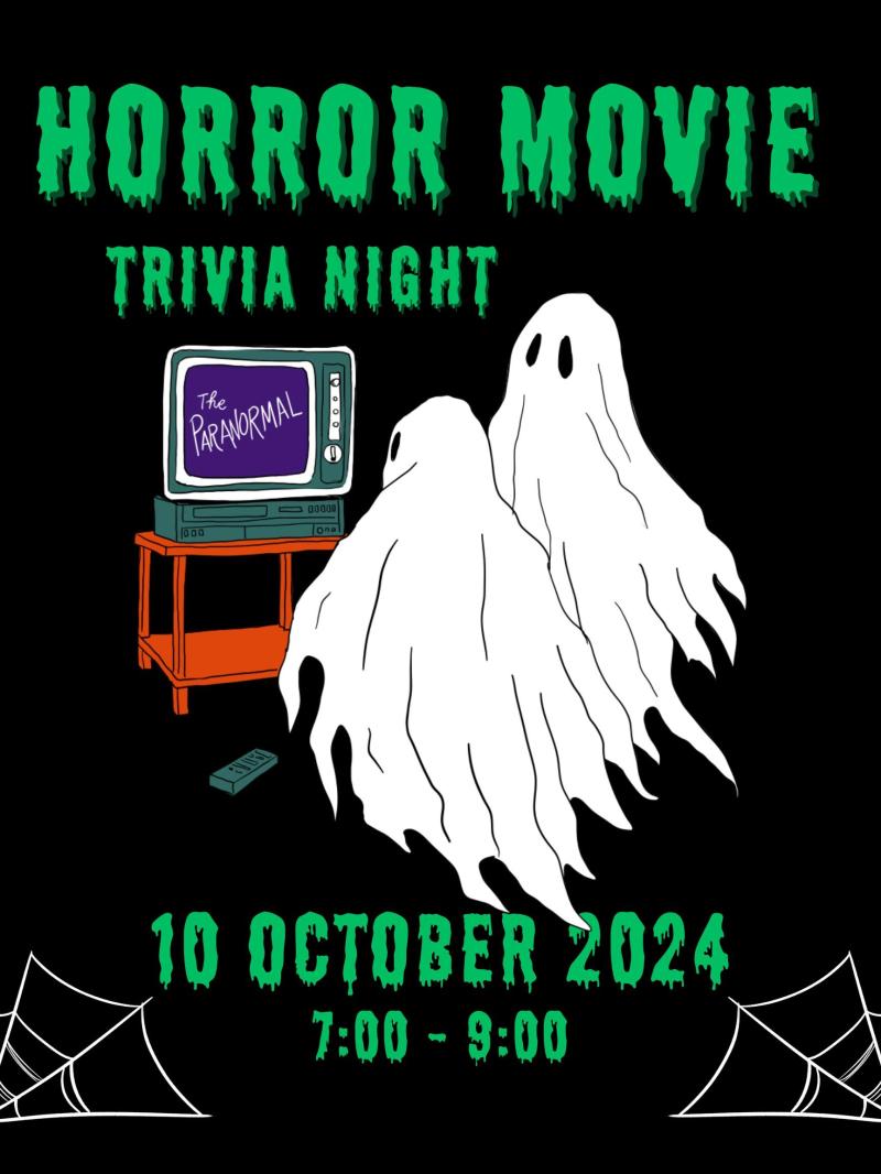 Calling all horror movie buffs! Join us for Horror Movie Trivia this Thursday, October 10th, from 7-9 PM. Whether you’re a fan of slasher flicks, haunted houses, or creepy classics, it’s time to put your scary smarts to the test!